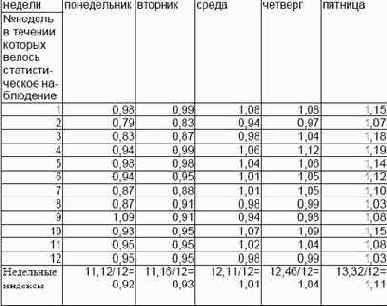 Индексы сезонности цен акций компании ААА