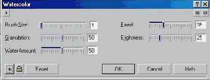 Оригинальный эффект (Рисунок 18.24, в центре) достигается при выборе команды меню Water Marker (Водный маркер). В диалоге настройки эффекта (Рисунок 18.26) вы можете выбрать один из трех вариантов эффекта. Варианты Default (По умолчанию). Order (Порядок) и Random (Случайно) описывают различное расположение мазков в рисунке. С помощью ползунка Size (Размер) устанавливается размер мазков. Ползунком Color Variation (Изменение цвета) задается степень разнообразия цвета в соседних мазках.